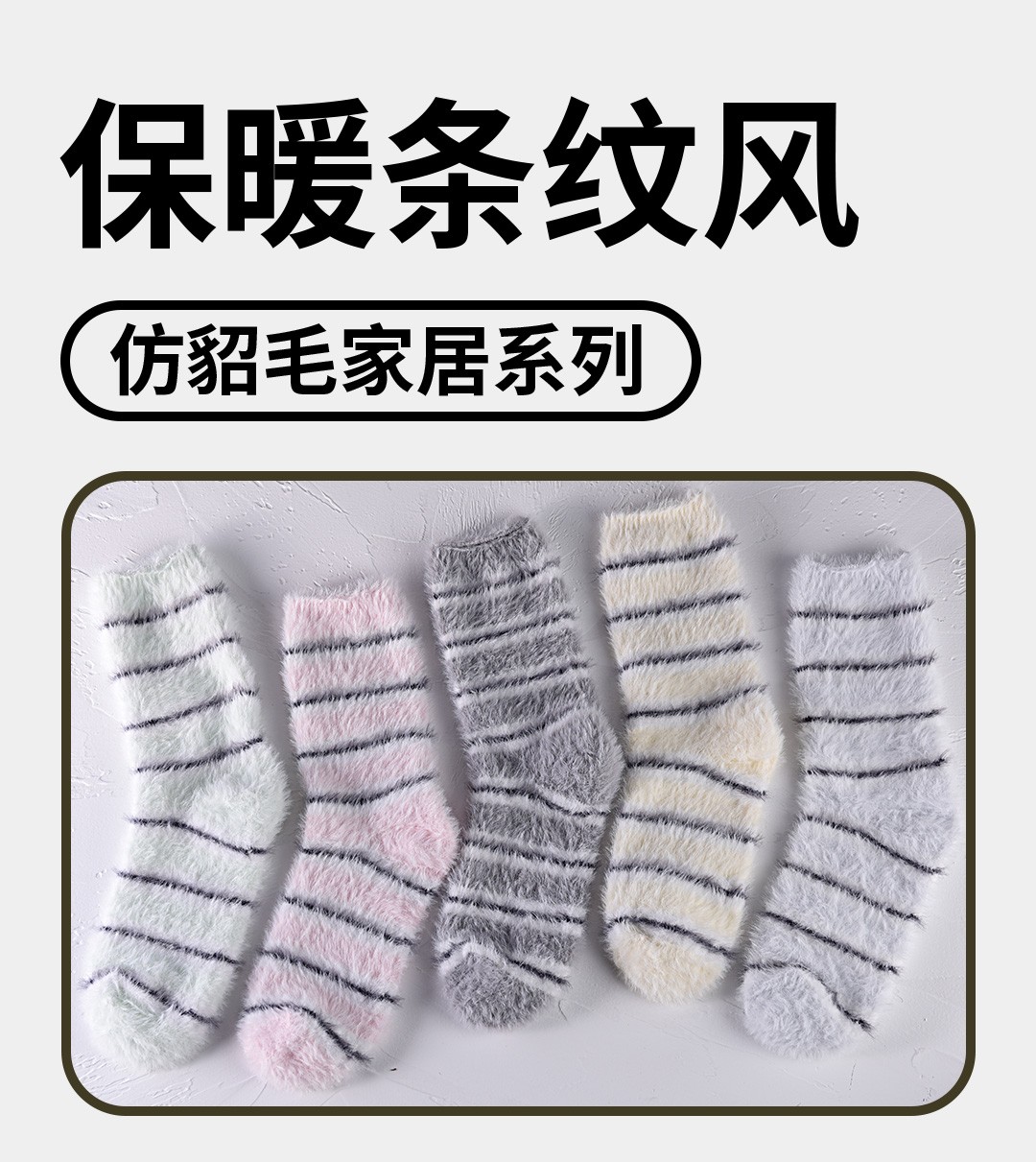 柏润袜子仿貂毛条纹女士中筒袜秋冬毛绒家居袜WLF1194