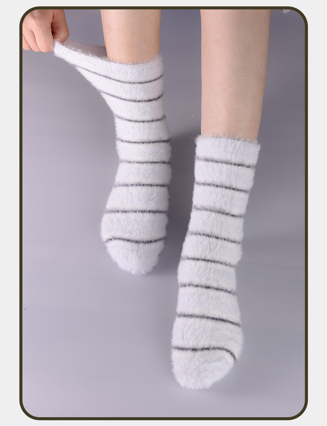 柏润袜子仿貂毛条纹女士中筒袜秋冬毛绒家居袜WLF1194